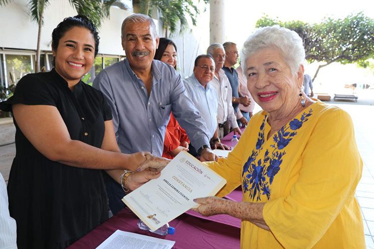 El Secretario de Educación y Cultura del Gobierno del Estado de Colima, Adolfo Núñez González, y la subsecretaria de Educación, María del Rosario Silva Verduzco, directora general de la Coordinación de Servicios Educativos, entregaron constancias a docentes que hicieron el curso formadoras y formadores para la Estrategia de Reforzamiento de Aprendizajes 2022 ?Vamos más allá?, aplicada en Colima y otras siete entidades del país, encaminada al fortalecer los aprendizajes de español y matemáticas en alumnas y alumnos de sexto de primaria y tercero de secundaria.